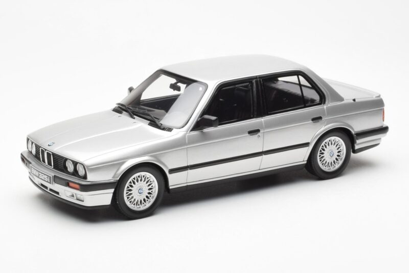 A 1:18 scale model measures approximately 25-28 cm (approximately 10-11 inches). The BMW 325i E30 Silver Otto 1:18 is perfect for display in a glass cabinet or on a shelf.