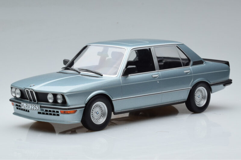The BMW M535i E12 Blue Norev 1:18 is crafted from Diecast. Die-cast zinc alloy body with detailed plastic parts, rubber tires, and high-quality paint finish. Die-cast models are known for their weight, durability, and realistic feel.