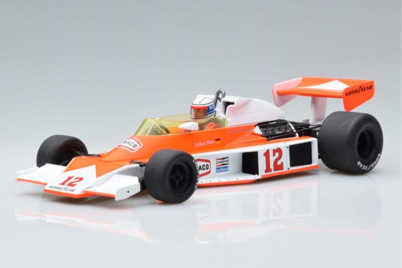 The McLaren M23 Marlboro #12 J. Mass German Grand Prix 1976 MCG 1:18 is crafted from Diecast. Die-cast zinc alloy body with detailed plastic parts, rubber tires, and high-quality paint finish. Die-cast models are known for their weight, durability, and realistic feel.