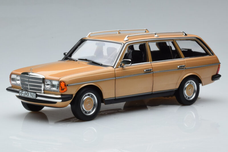 The Mercedes 200T S123 Beige Norev 1:18 is crafted from Diecast. Die-cast zinc alloy body with detailed plastic parts, rubber tires, and high-quality paint finish. Die-cast models are known for their weight, durability, and realistic feel.