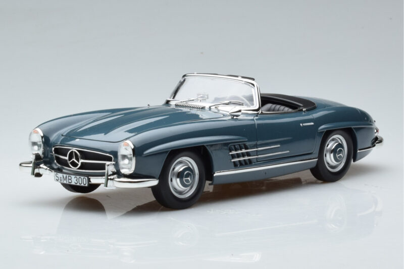 The Mercedes 300 SL W198 Roadster Blue Norev 1:18 is crafted from Diecast. Die-cast zinc alloy body with detailed plastic parts, rubber tires, and high-quality paint finish. Die-cast models are known for their weight, durability, and realistic feel.