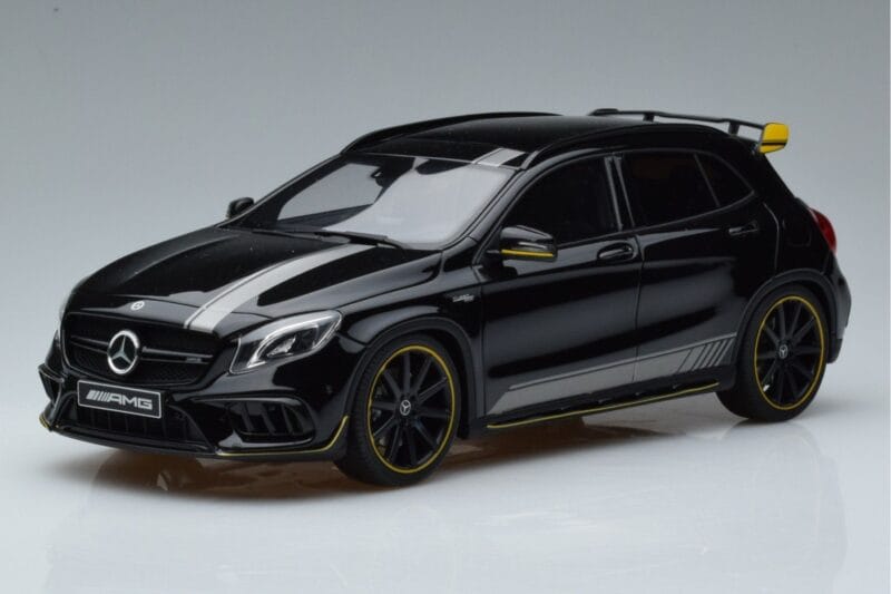 The Mercedes AMG GLA45 X156 Yellow Night Edition GT Spirit 1:18 is crafted from Resin. High-quality resin with hand-painted details and limited production runs. Resin models offer exceptional detail and are prized by serious collectors for their craftsmanship.