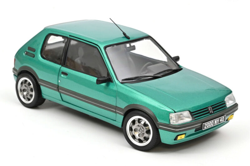 A 1:18 scale model measures approximately 25-28 cm (approximately 10-11 inches). The Peugeot 205 GTi Griffe Norev 1:18 is perfect for display in a glass cabinet or on a shelf.