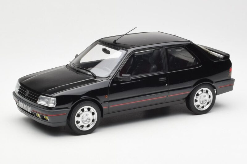 A 1:18 scale model measures approximately 25-28 cm (approximately 10-11 inches). The Peugeot 309 GTi Black Norev 1:18 is perfect for display in a glass cabinet or on a shelf.