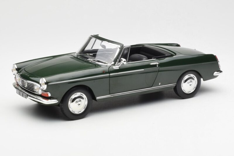 The Peugeot 404 Cabriolet Antique Green Limited Edition Norev 1:18 is crafted from Diecast. Die-cast zinc alloy body with detailed plastic parts, rubber tires, and high-quality paint finish. Die-cast models are known for their weight, durability, and realistic feel.