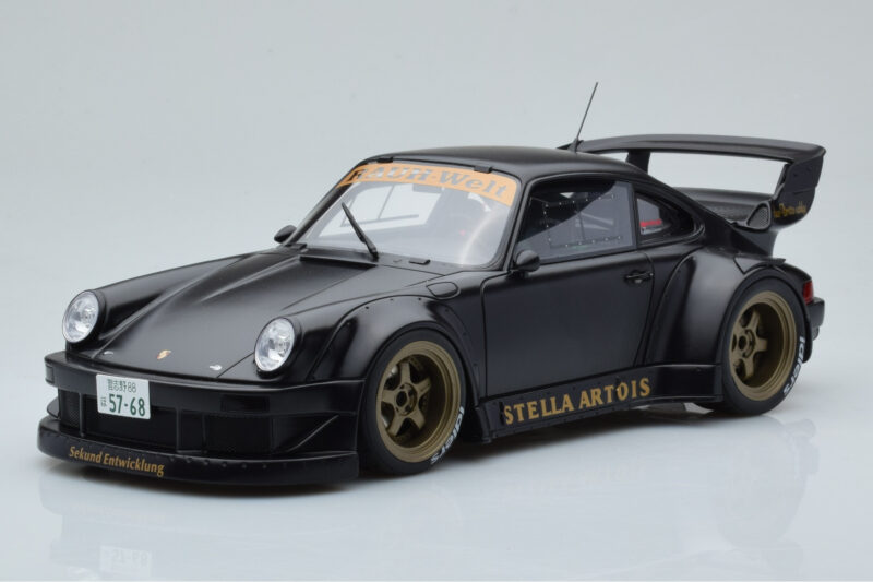 The Porsche 911 964 RWB Stella Artois Black GT Spirit 1:18 is crafted from Resin. High-quality resin with hand-painted details and limited production runs. Resin models offer exceptional detail and are prized by serious collectors for their craftsmanship.