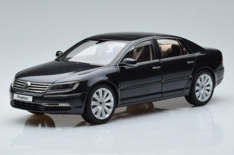 The Volkswagen Phaeton V6 Mazeppa Gray Kyosho 1:18 is crafted from Diecast. Die-cast zinc alloy body with detailed plastic parts, rubber tires, and high-quality paint finish. Die-cast models are known for their weight, durability, and realistic feel.